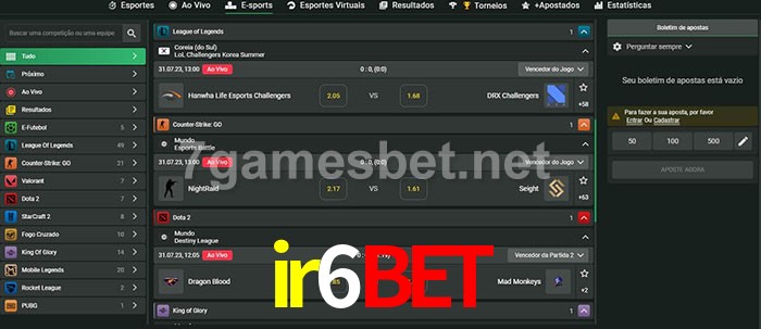O ir6bet oferece uma grande seleção de opções de apostas em e-sports com probabilidades competitivas
